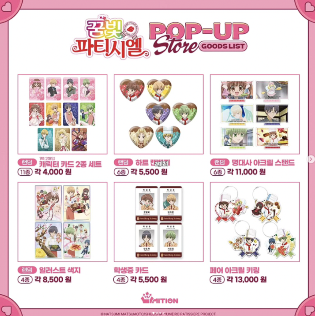 꿈빛 파티시엘 팝업스토어에서는 애니메이션 감성을 그대로 담아낸 굿즈들이 풍성하게 준비되어 있습니다.